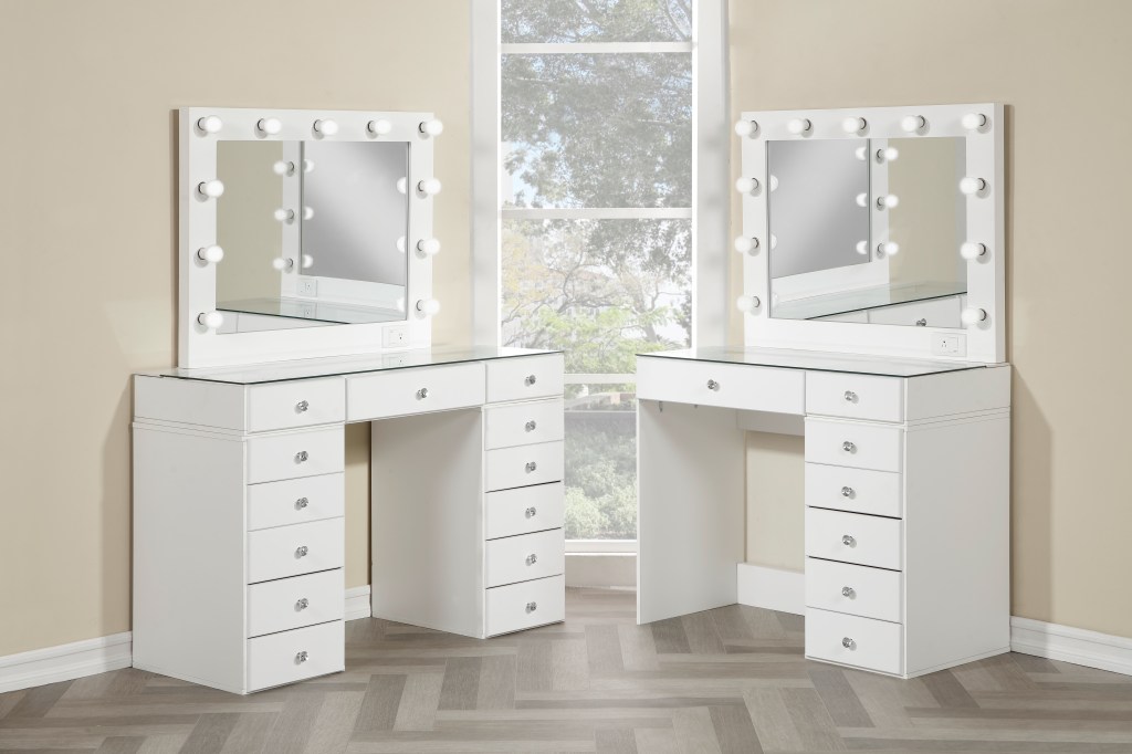 LEFT: V109DX – 9 DRAWER VANITY w/ GLASS TOP